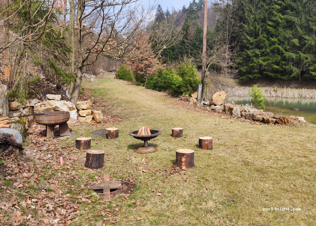 Es gibt mehrere Feuerstellen mit schöner Aussicht und viel Platz.