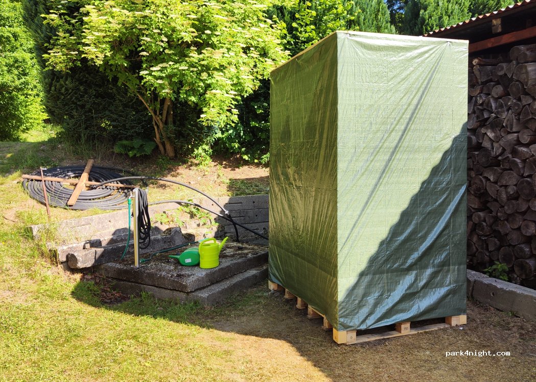 Trinkwasser, Trockentoilette und Strom sind auf dem Grundstück vorhanden.