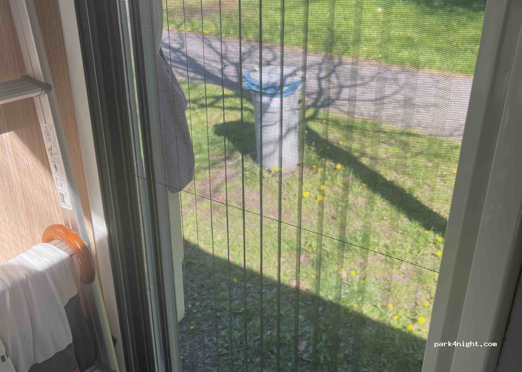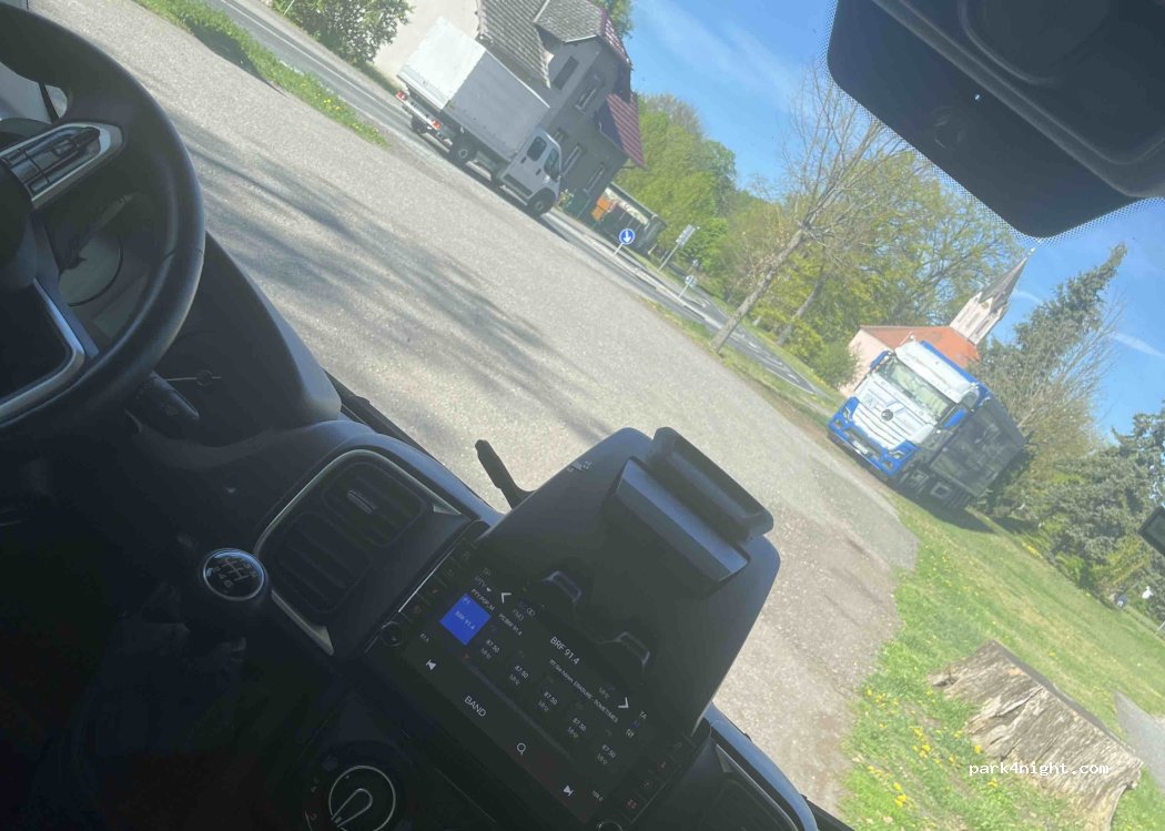 Magnifique parking directement sur la route de campagne, comprenant deux poubelles. Les camions et les camping-cars se garent ici et font leur travail en face. De votre côté de la rue, il y a des sièges avec des tables pour manger.