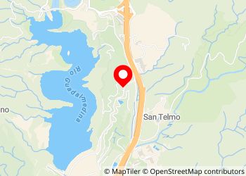 Parking space under several picnic areas. At the top is a playground and a great bridge.