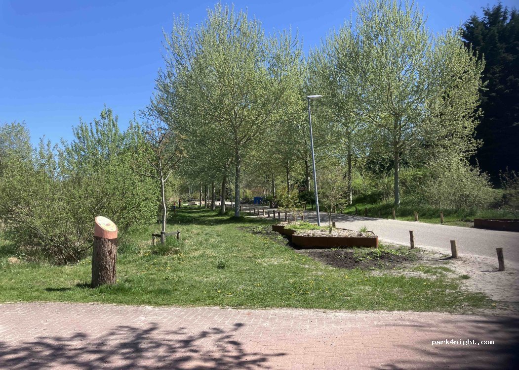 Nieuw aangelegde parkeerplaats. Soms schaduw mogelijk. Uitgangspunt voor een leuke wandeling met hond op de rand van de stad. Park met tiny huisjes op 300 meter. Regeneratieve zelfoogst tuin in de buurt en tuin in de stad voor een wandeling. Bij tuin in de stad opk twee plaatsen voor campers met electriciteit.