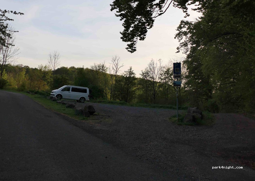 Ein Wanderparkplatz dient als Ausgangspunkt für eine Wanderung auf den Oechsenberg. Es ist herrlich ruhig. Die Zufahrt ist allerdings nur für Transporter geeignet. Am Wochenende ist es angenehm ruhig, unter der Woche hört man das nahe Basaltwerk.