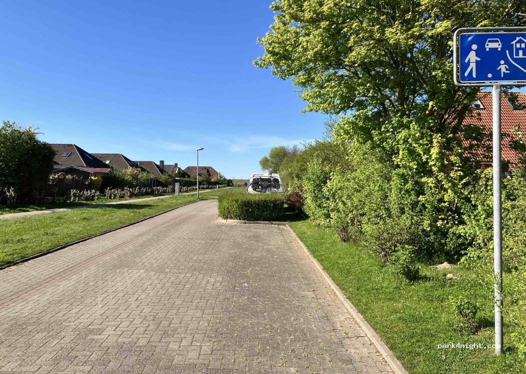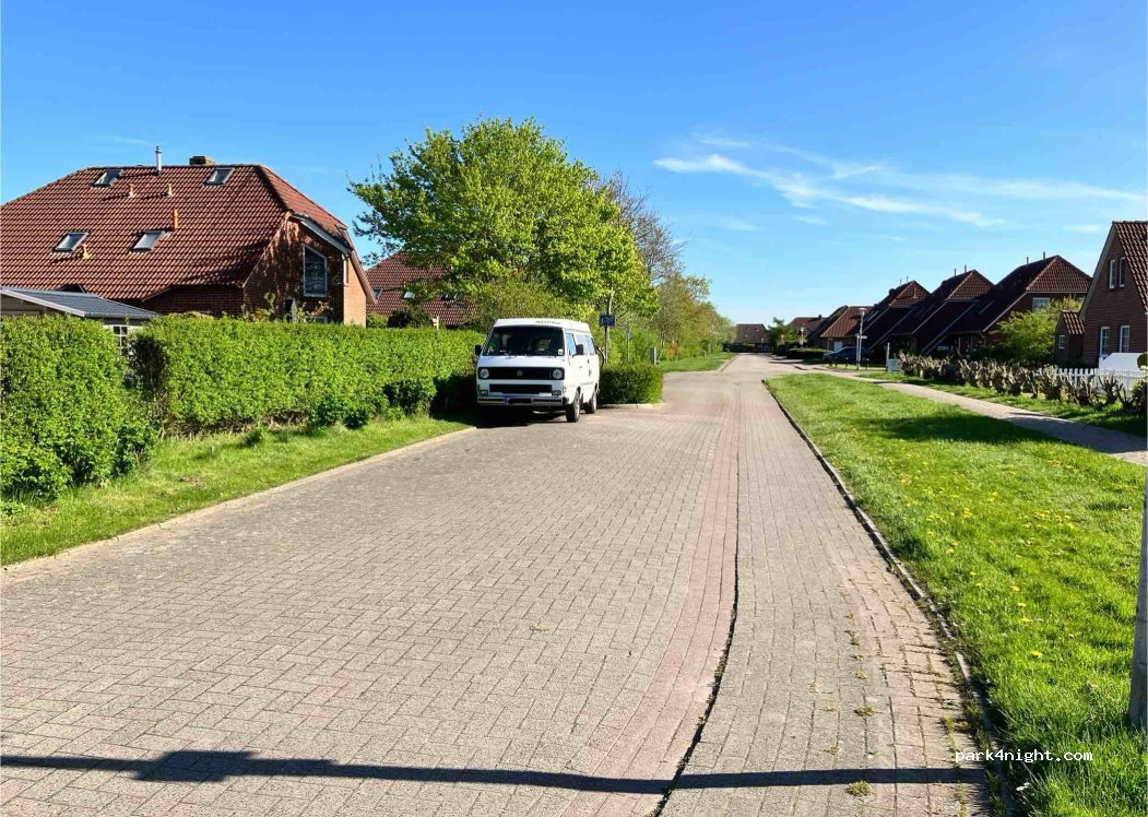 El pub Windfuhr está a la vuelta de la esquina, donde se celebró una auténtica fiesta con música en directo de Van't Siel. Quería estar allí, así que encontré este lugar tranquilo y no molesté a nadie. El lugar es más adecuado para vehículos pequeños y está ubicado en una urbanización de casas vacacionales.
