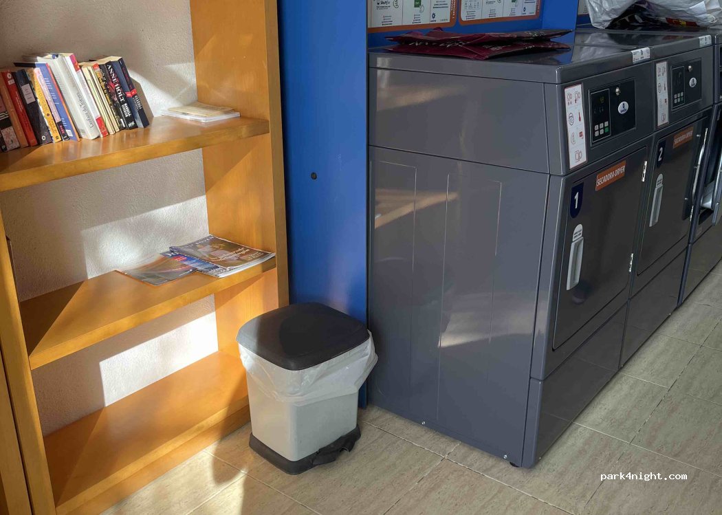 Lavandería pública junto a la recepción del camping Éden. 5 lavadoras de 10 kg (incluido detergente) y 3 secadoras. Pago con tarjeta o app. Aparcamiento cercano.