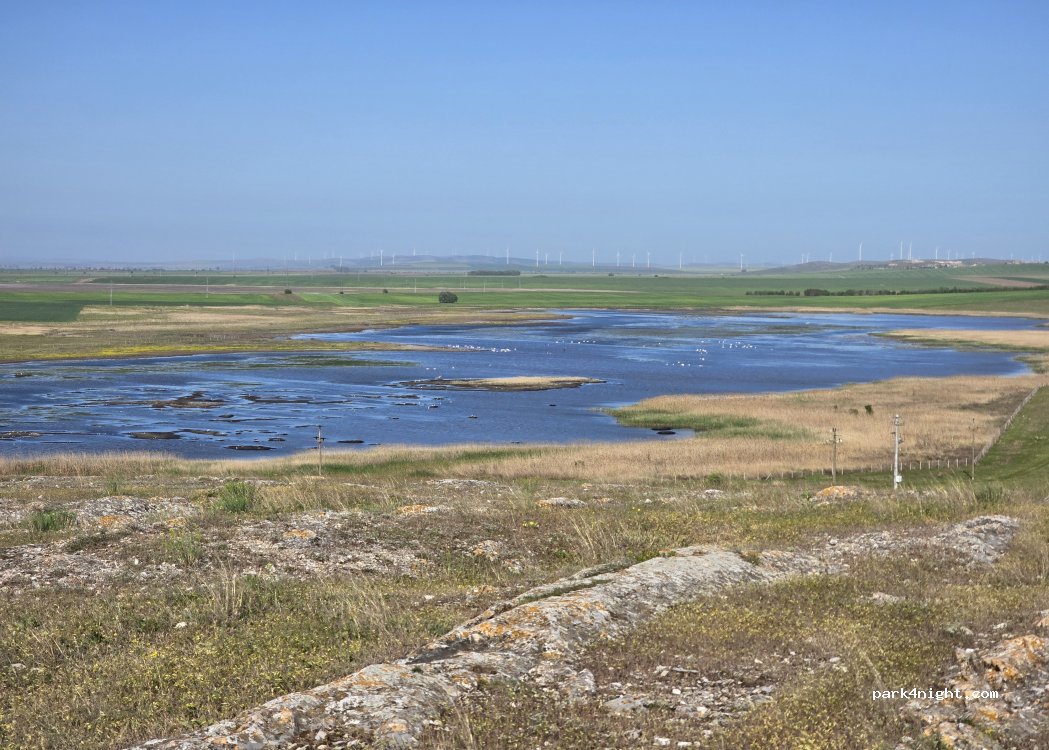 The water tower hill offers the best view of Lacul Saraturii, the village and the delta. Access is by dirt track on your right as you leave Murighiol on 222c (easy to miss). There is a give way sign at the bottom. We did it on foot, a 4x4 would get up here easy, campervan maybe. When we came there was no litter and no dogs. Not sure if camping here is allowed but if you wanted to try it is not very flat!