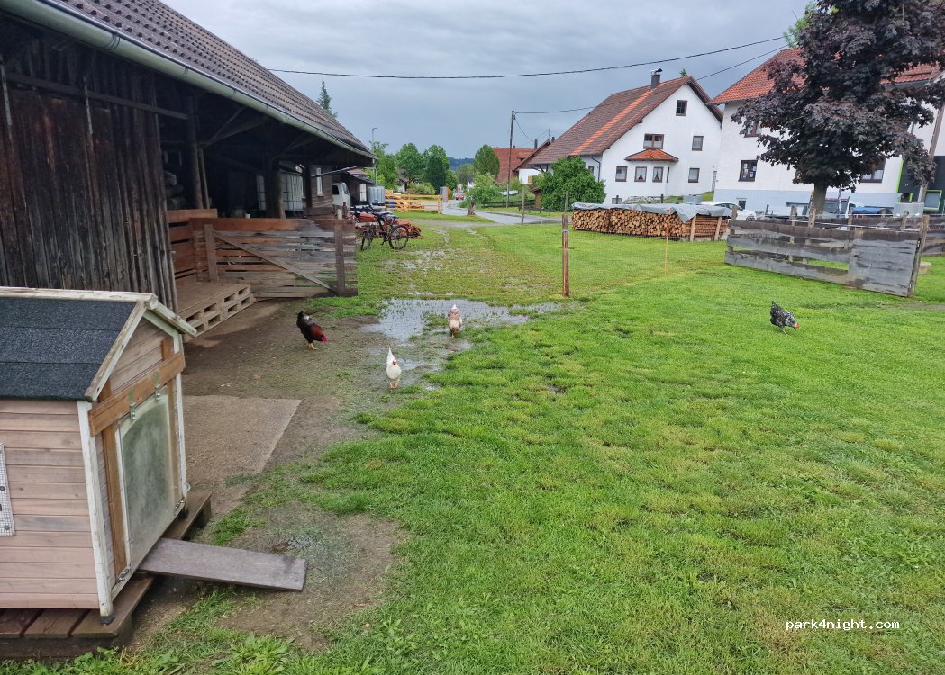 Ein hässlicher Platz an der Straße. Abends und morgens einiger Verkehr. Die "Spende" heisst eigentlich 15,- Gebühr. Dafür echt zu teuer. Auch wenn man 6 Eier dazu bekommt.....