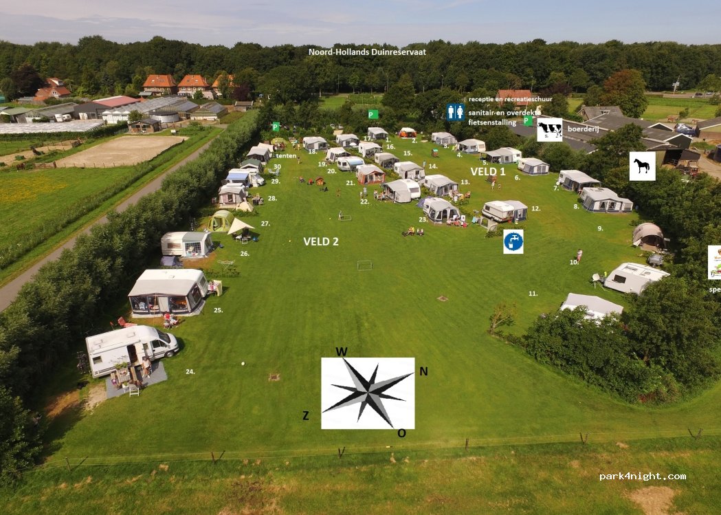Camping rural con 30 parcelas. Cerca de varias rutas de senderismo y ciclismo, incluyendo la ruta costera. Situado en el pólder de Castricummer, frente a la reserva de dunas de Holanda Septentrional. Zona de juegos infantiles. Se admiten perros. Autocaravanas de hasta 7 metros. Autocaravanas de mayor tamaño, consultar.