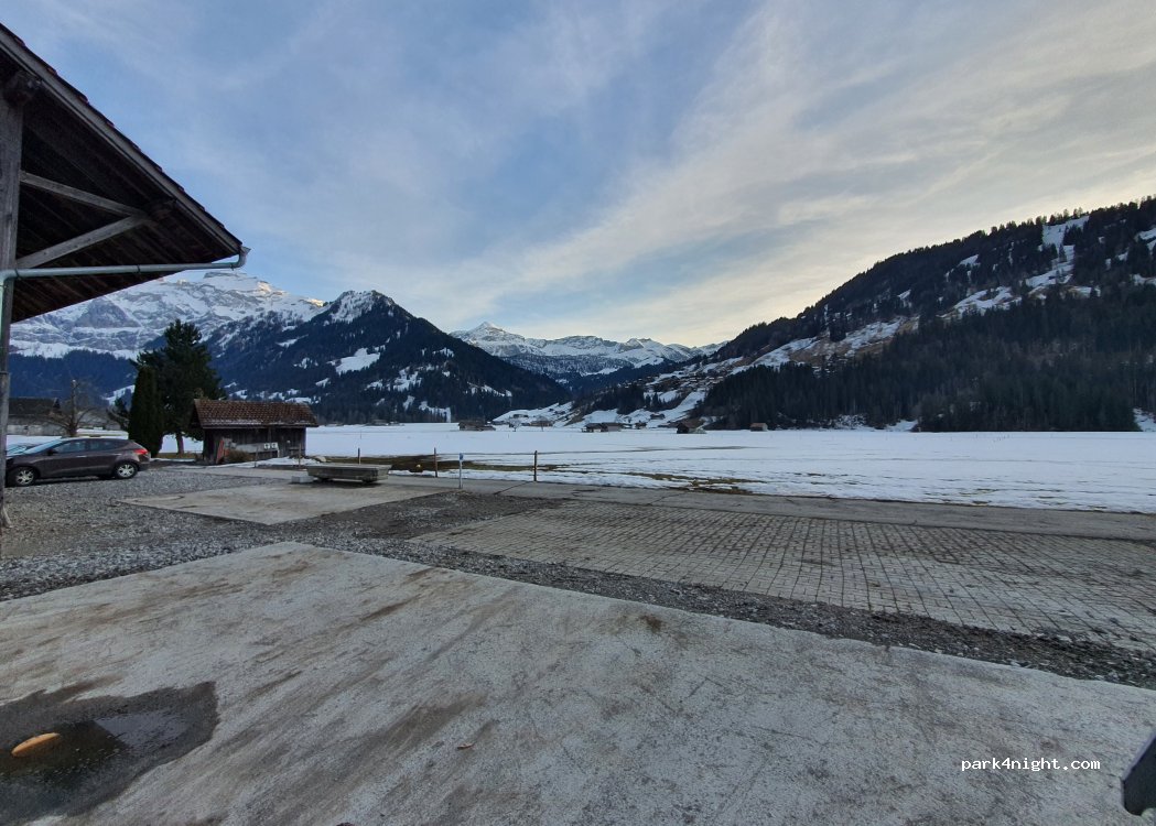 You park your vehicle next to our house in a designated spot and enjoy a perfect view of the Lenk valley. Running water and electricity are available from a cable reel. Renovated toilets and showers are available as shared facilities upon request. All in all, an ideal location for visiting many attractions in Lenk on foot, by bike, or by bus (bus stop 50 meters away). A 5-minute walk from the village, yet in a quiet location. A 10-minute walk from the Metsch valley station. See for yourself ;)