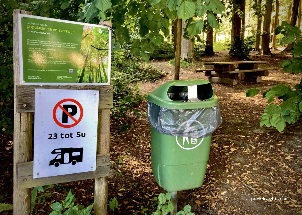 Grote parking tussen de bomen, zeer drukke plaats. Van hieruit kan je perfect verschillende wandelingen of fietstochten maken.