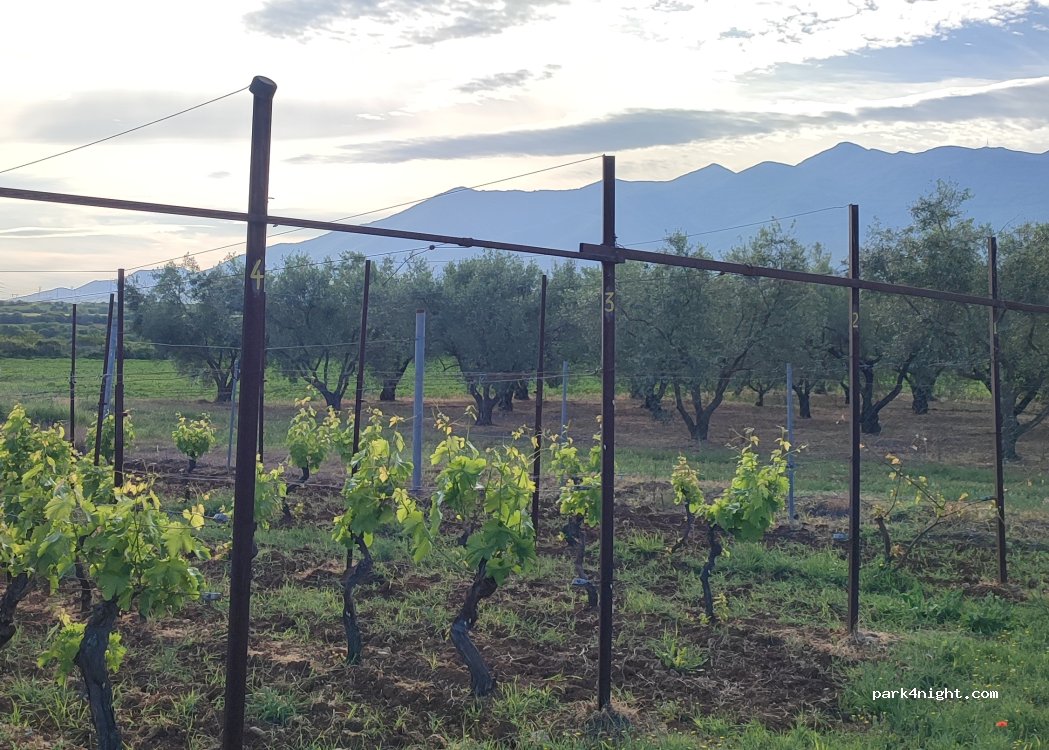 Ofrecemos un tranquilo aparcamiento para su furgoneta o autocaravana dentro de nuestro viñedo privado, a las afueras del pequeño pueblo de Aggista, en las faldas del monte Paggaio.