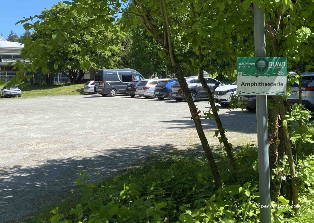 Kostenloses Parken ohne Verbotsschilder. Tagsüber, insbesondere am Wochenende, füllt sich der Parkplatz schnell, da viele Familien hier parken, um den Park zu besuchen. Mülleimer stehen zur Verfügung. In der Nähe des Parkplatzes befinden sich Spielplätze, ein Modelleisenbahnclub (am Wochenende fahren oft Züge) und eine Tauschbörse (für Bücher, Kleidung, Spielzeug etc.).