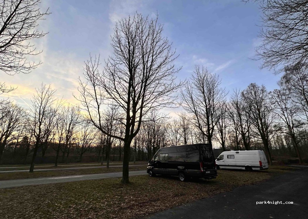 Schöner Parkplatz im Grünen direkt am Kienehoef Park gelegen. Wir haben hier 2 schöne ruhige Nächte verbracht und von hier aus ne schöne Wanderung zum Schloss Henkenshake und in die Stadt unternommen.
