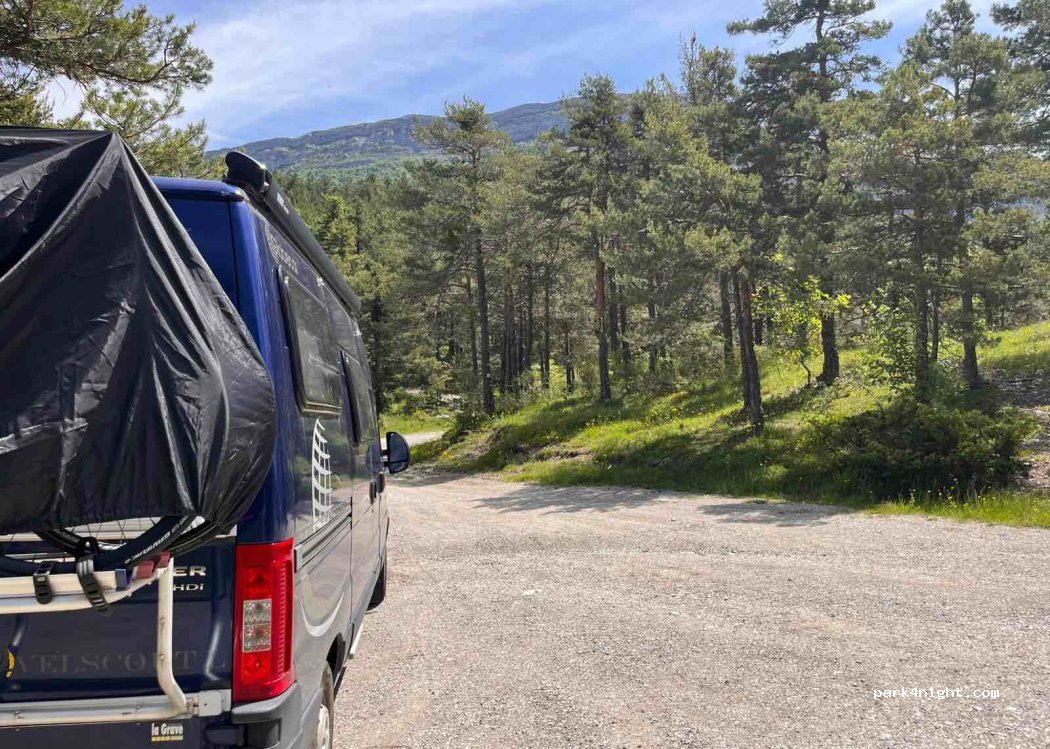 Rustige plek op de top van Col de la Pierre Basse. Iets van de weg af. Napoleon is hier ook ooit langs geweest. Minimaal 4g bereik. En heel weinig verkeer.