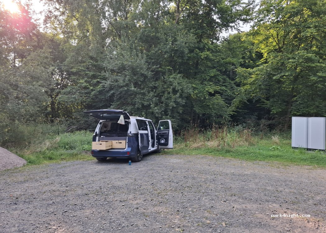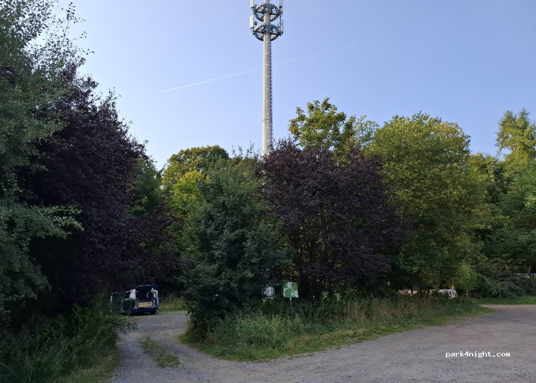 Nice and quiet place in the back of a small residential area. There is a second parking lot behind the obvious one close to the street that is very secluded. In the morning some people pass who walk their dog and were very friendly. The plot is next to a telephone tower, so great 5G signal. No facilities.