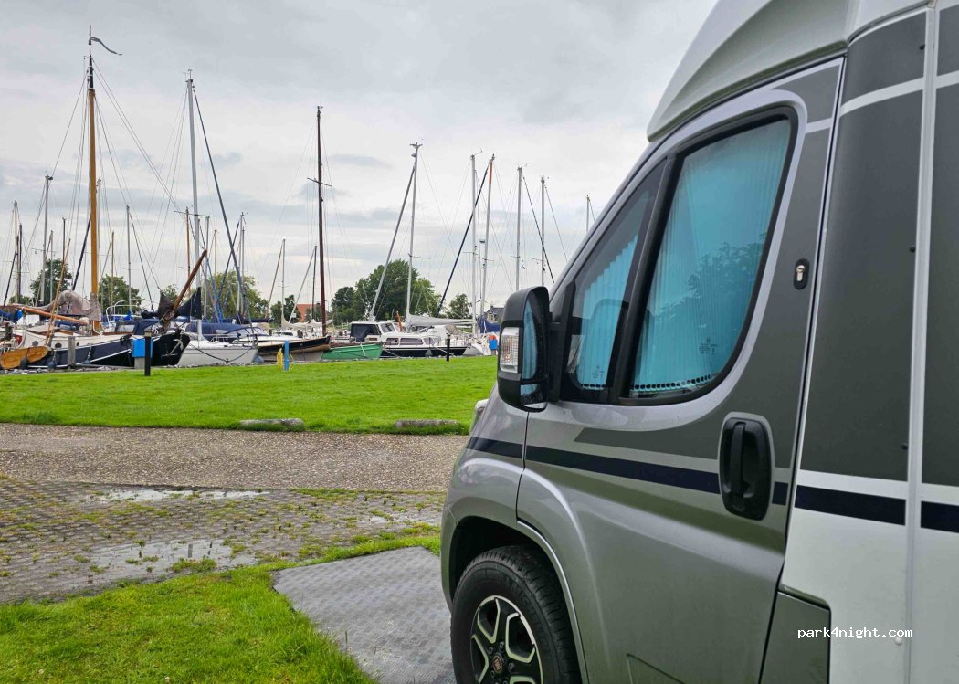 Own parking space and partly on grass along a canal and village harbor. Charming. In winter time only 2 pitches are available.