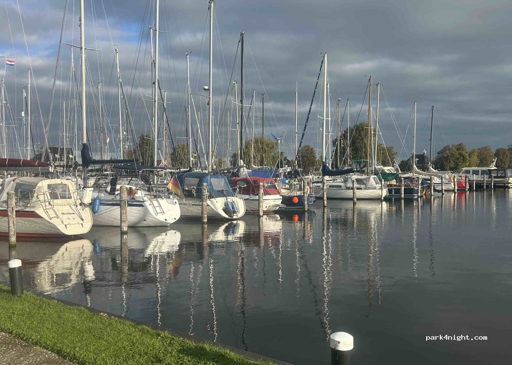 Mooie plek aan de haven voor 21 euro zonder stroom en 2 personen. We wilden nog even weg met de camper, kregen we netjes een bordje met bezet mee om te gebruiken
