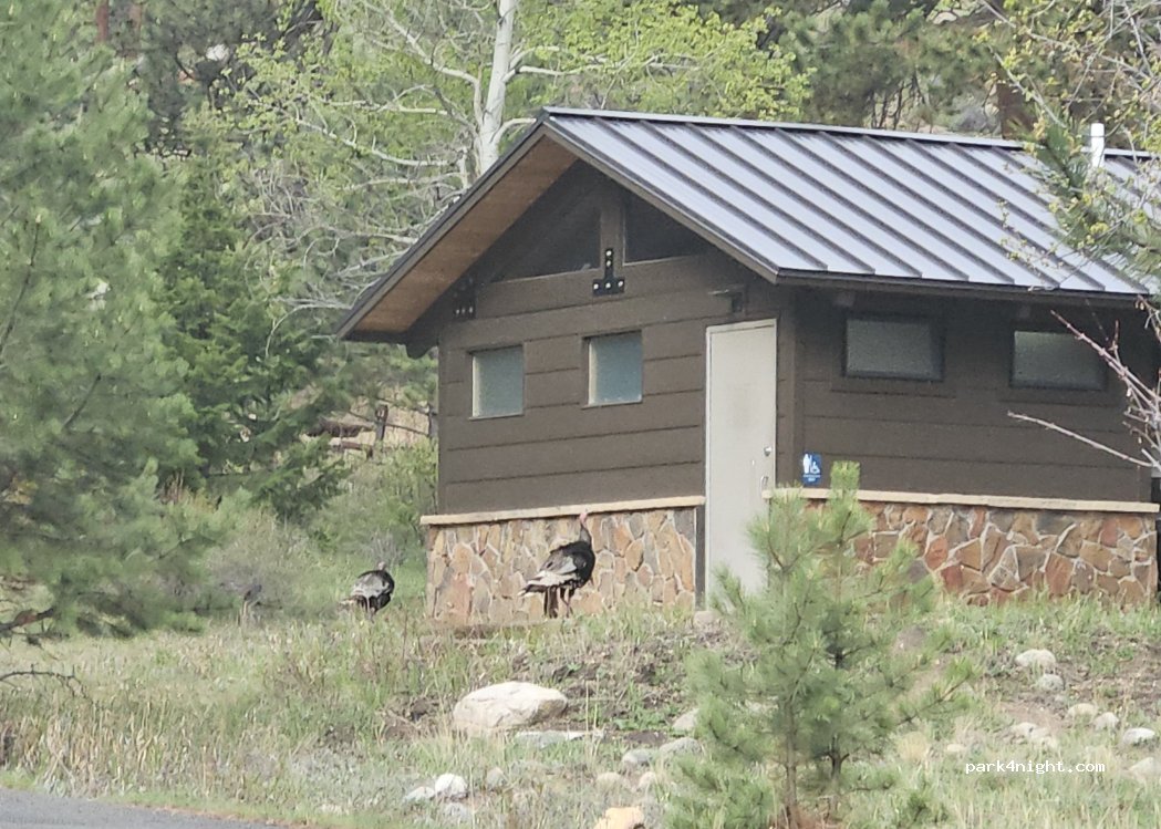 This campsite is located in the government-owned national park (reservations required on website). It has clean, new restrooms, a fire pit, and a table, but nothing else. It's a good base for visiting and hiking in RMNP.