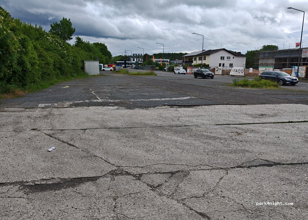 Ein riesengroßer Platz zum Abstellen sämtlicher Fahrzeuge kölnisch kostenlos an der Straße 1000 Quadratmeter nebenan Burger King aber weit genug entfernt alles. hier kann man pennen wenn man nicht allzu lärmempfindlich ist.