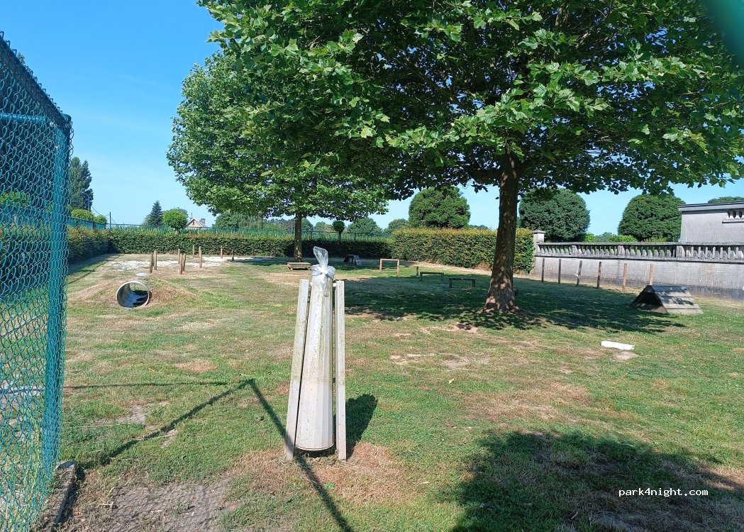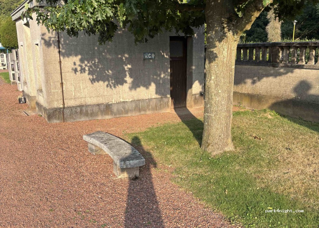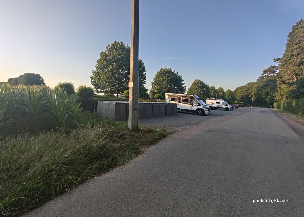 parking gravier et plat du cimetière et du canicross. Les deux sont ouverts toutes la nuit. Il n'y a visiblement pas de point d'eau dans le cimetière et les toilettes étaient verrouillées lors de notre passage. Par contre énorme défaut, le spot est sous le corridor aérien des avions au décollage donc très bruyant de 6h à 23h. a part cela c'est très calme