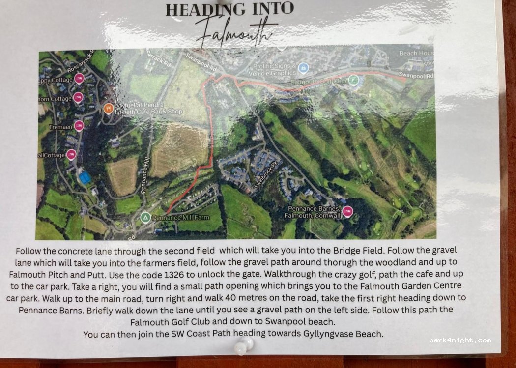 Ein ruhiger, von Hecken umgebener Campground, in der Nähe von Falmouth. Sehr gut geeignet für eine Nacht. Zufahrt durch ein Tor abgeriegelt (Code). Nachts hört man Eulen und sieht Sterne. Die Sanitäranlagen sind einfach aber zweckmäßig. Abspülbecken draußen, mit Heißwasser. Kosten 25£ für ein Zelt. Der Eigentümer war bei uns nicht da, anrufen notwendig. Geld am nächsten Tag bezahlt.