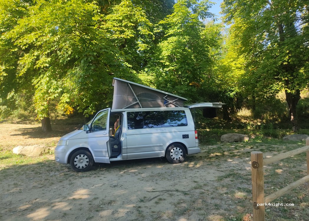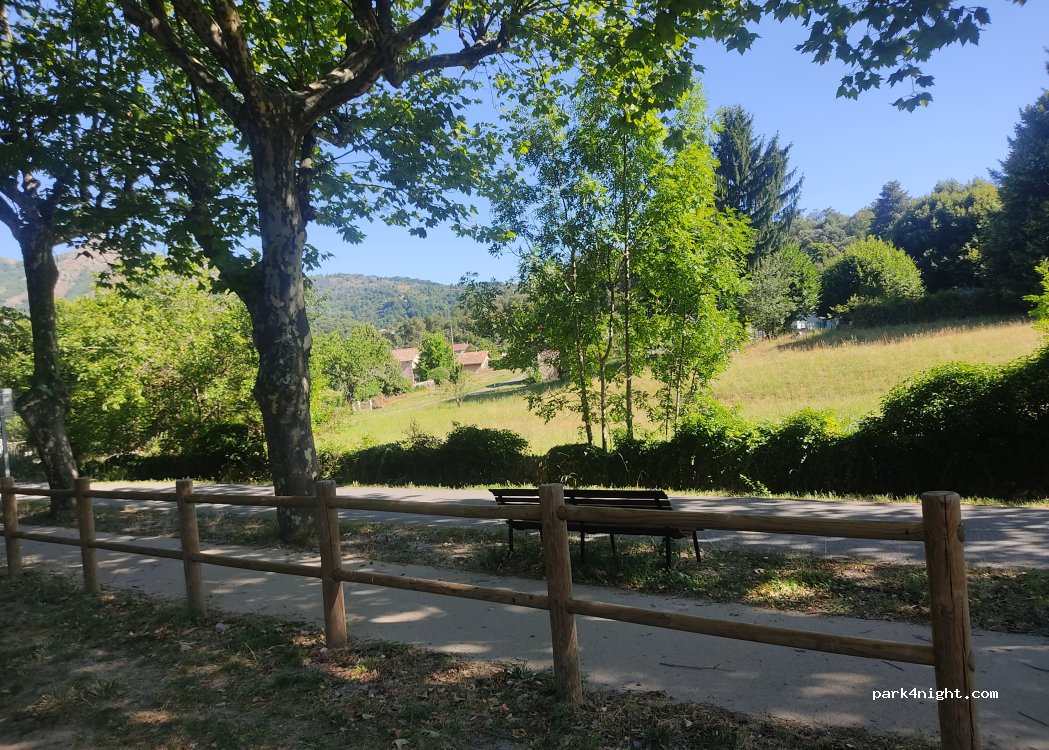 Petite aire bien ombragée et entretenue, idéal pour une nuit, proche du bourg de jaujac, magnifique petite village médiéval qui vaut le détour !