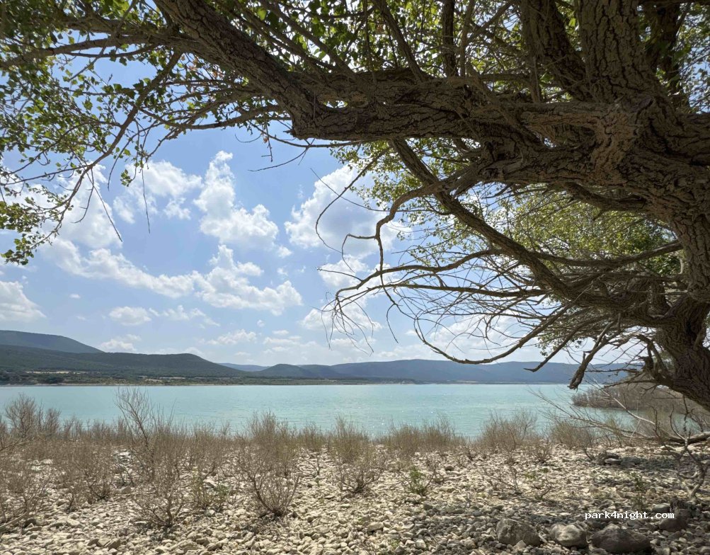 Aan het meer, als er water in staat. Pad heel goed te doen ook zonder 4x4, met een gewone bus dus.