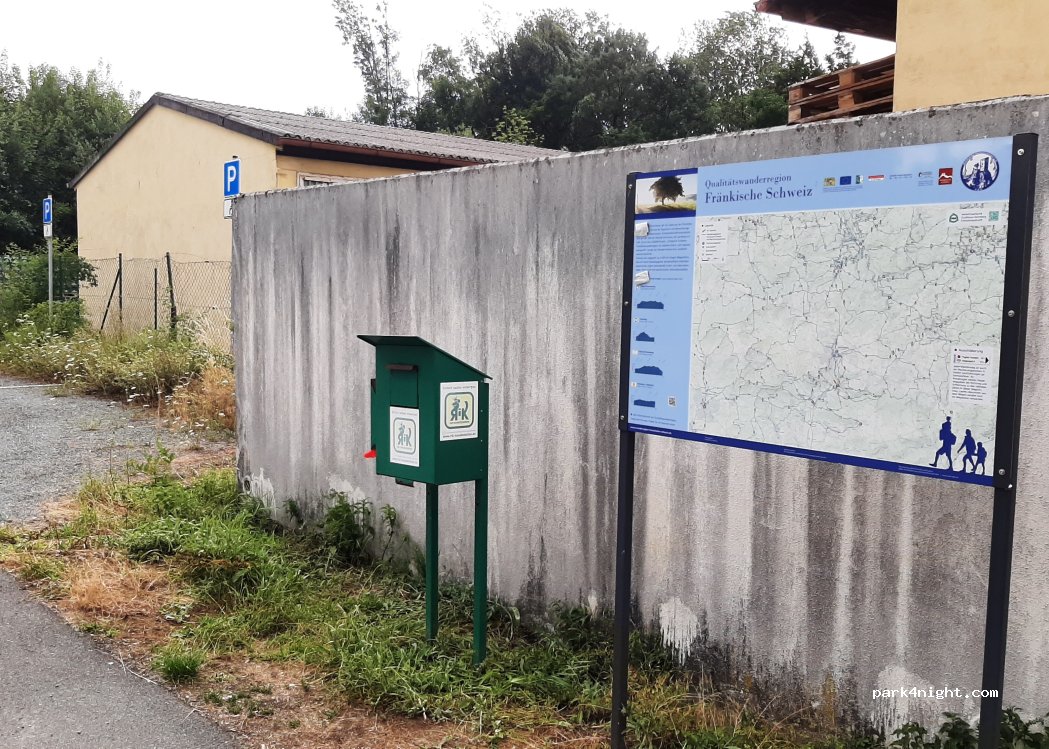 Es gibt 2 Wanderparkplätze: einer mit Ladestation und gleich daneben "Parkplatz Ost". Wir nächtigten auf letzterem. Klein und geschützt, fast eben. Man hört paarmal die Klosterkirchenglocken, früh morgens kräht ein Hahn. Wer leichten Schlaf hat hört auch noch die Bahn (weiter weg), wenig frequentiert, da Gräfenberg Endstation ist. Wir haben ruhig und gut geschlafen.