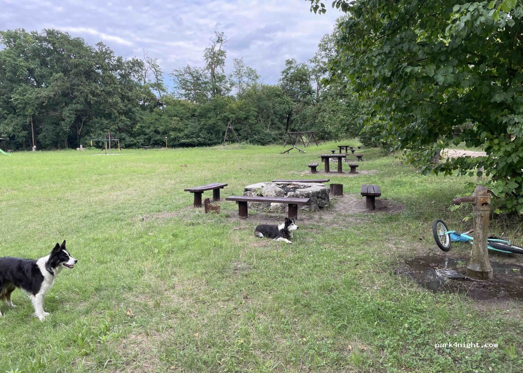 Beaucoup de tables, certaines même avec un toit. Le robinet a un bon débit, mais il n'y a pas de raccord pour le tuyau.