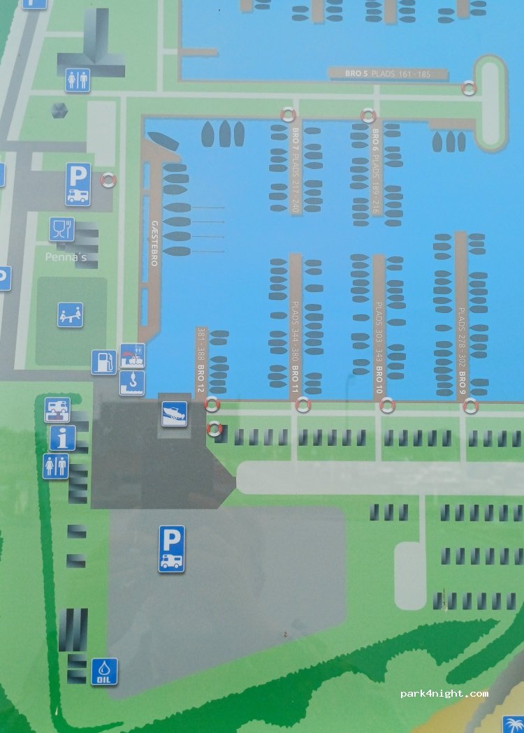 Schöner Stellplatz mit schönem Blick auf den Sportboothafen. Im hinteren Teil etwas mehr Verkehr, stört aber am Tage wenig, in der Nacht ruhig. Die City ist in 30 Min zu Fuß erreichbar. Schöne Innenstadt, spannender Hafen. Da wir komplett Autark sind, sind die Bäder und Strom nicht relevant. Gute V/E , sieht recht neu aus.