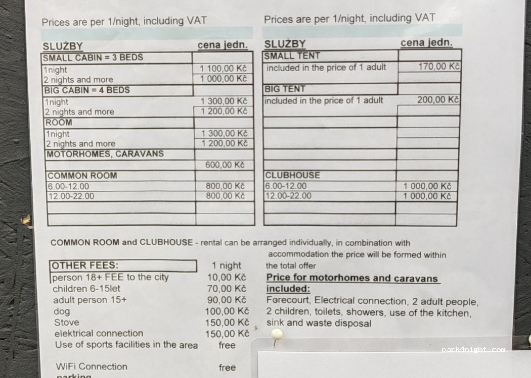 15 € la nuit pour un camping-car, 2 personnes, 1 chien. Pas de possibilité de remplir les eaux en plus l’eau au robinet ne sent vraiment pas bon. Réseau wifi nul