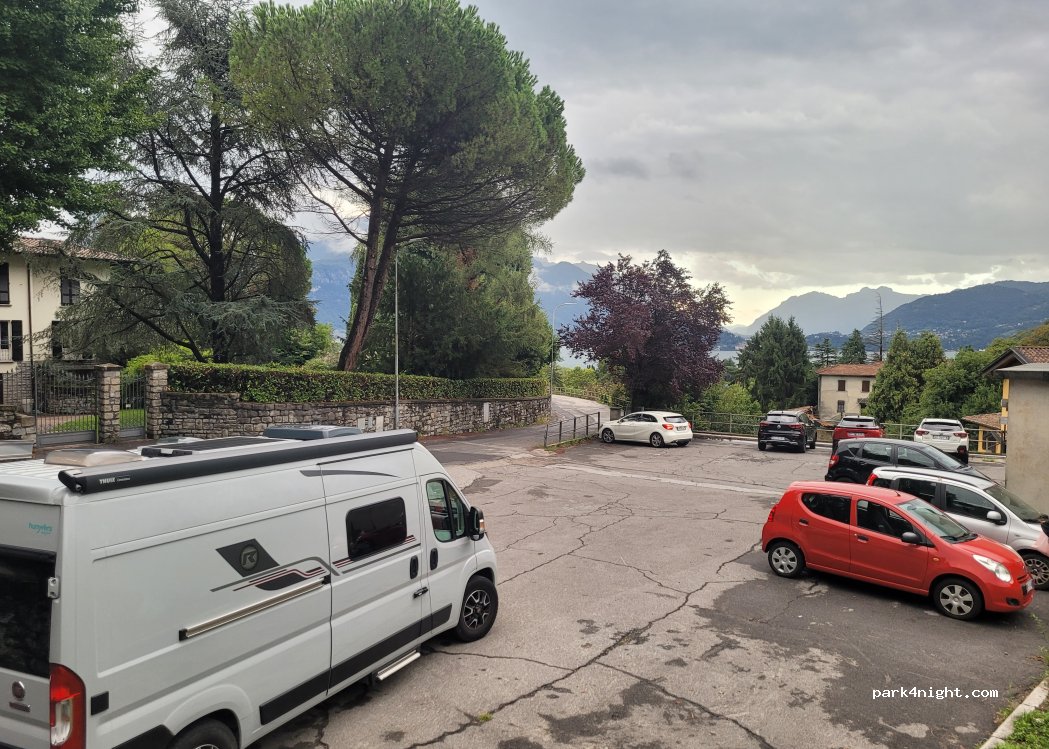 Parking parfait pour la nuit, un peu de bruits de la route. Très bon restaurant un peu plus haut (suivre les fleches) avec très belle vue. Visite à pied de Menaggio.