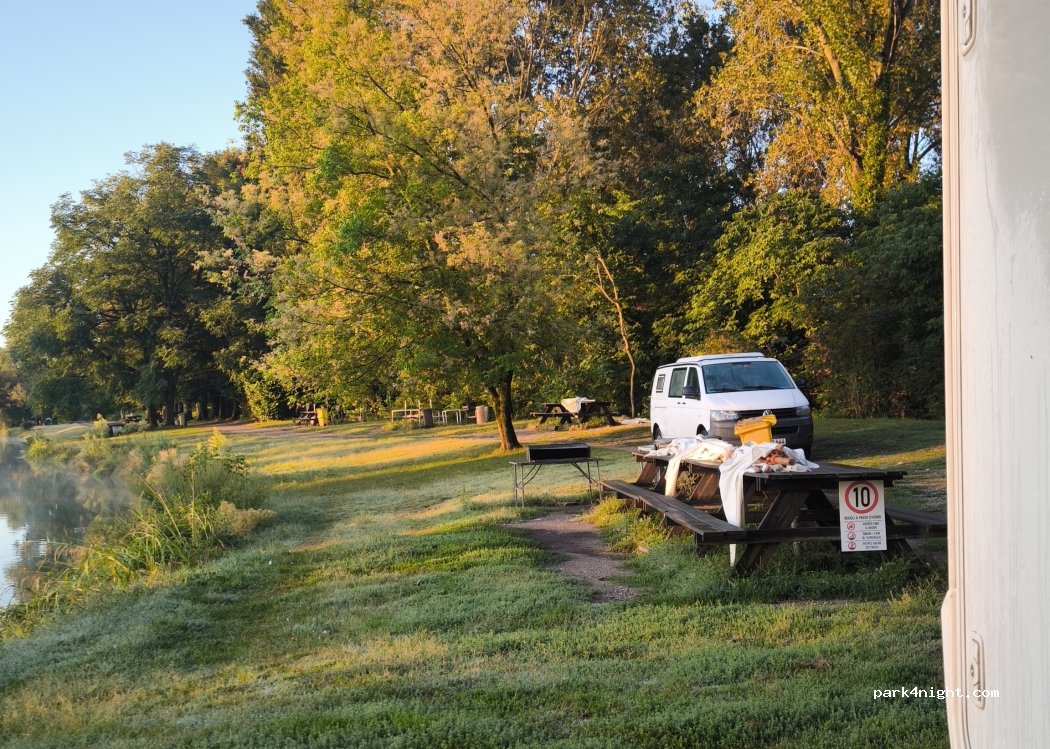 Schöner Platz direkt am See (24 €, 2 Erw., 1 Hund, 1 Nacht mit warmen Duschen). Man kann sich frei rund um den See hinstellen. Sanitäre Anlagen sind sehr sauber und großzügig. Der Betreiber ist freundlich, lustig und spricht auch Englisch. Bei ungünstigem Wind hört man die Autobahn. Bänke, Grills & reichlich Mülltonnen rund um den See vorhanden.
