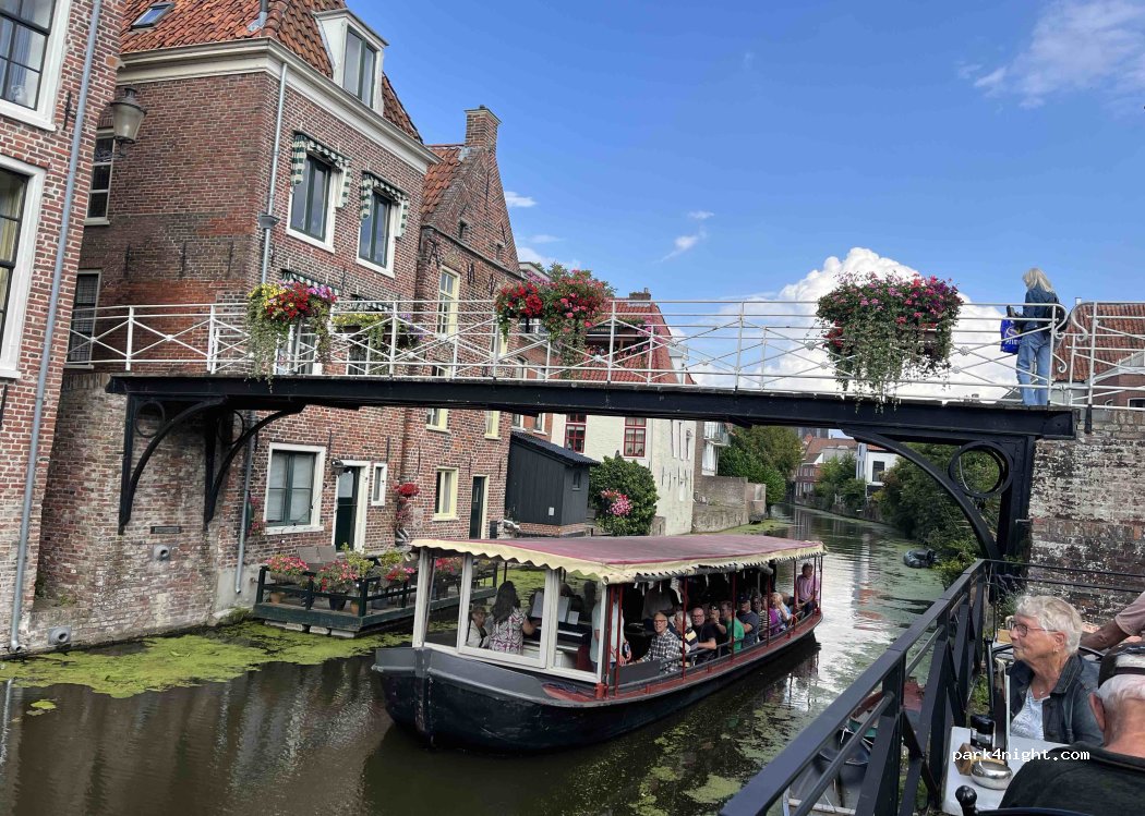 Parkplatz gegenüber dem Supermarktparkplatz. Sehr ruhig. Dorfzentrum und kleiner Hafen 50m entfernt. Sehr gut geeignet für einen Besuch dieses typischen Dorfes mit seinen Grachten und Hängeküchen. Der Wohnmobilstellplatz füllt sich sehr schnell, daher bleibt nur der Platz gegenüber dem Supermarkt mit Blick auf einen Teich und die Landschaft. Wir verbrachten eine ruhige Nacht mit anderen Wohnmobilen und es war auch das jährliche Dorffest. Ich empfehle diesen Parkplatz und das Dorf.