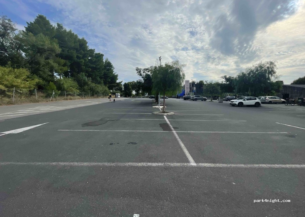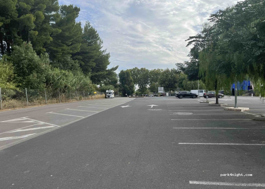 Aparcamiento junto al Marché du Lez, sin restricción de altura.