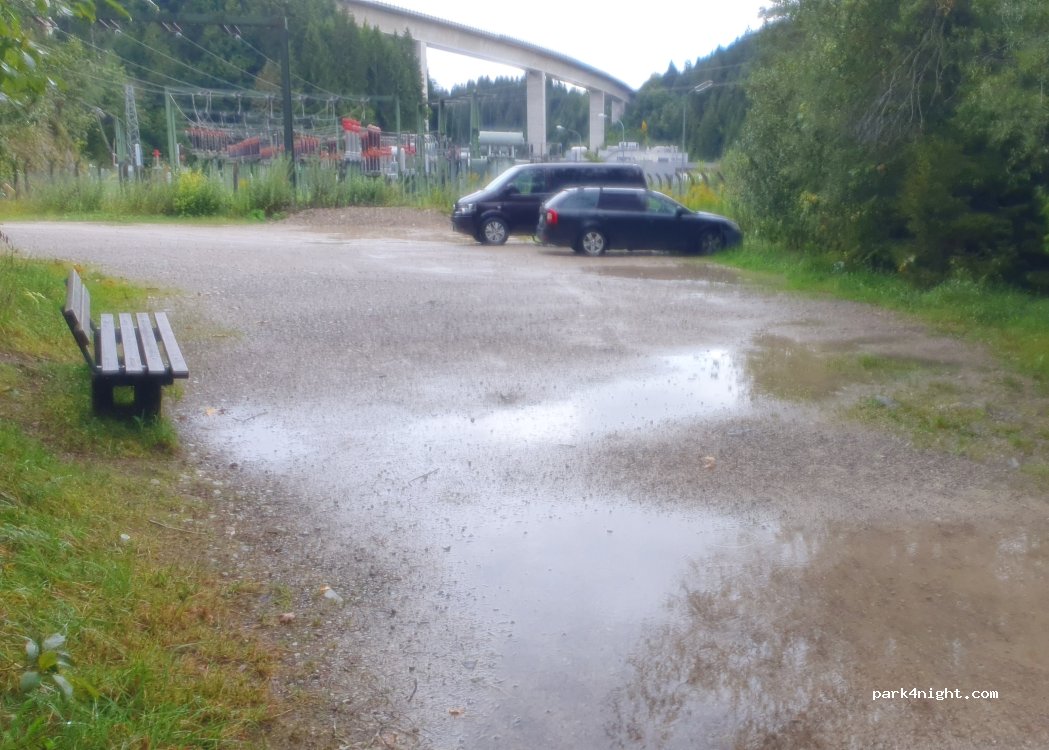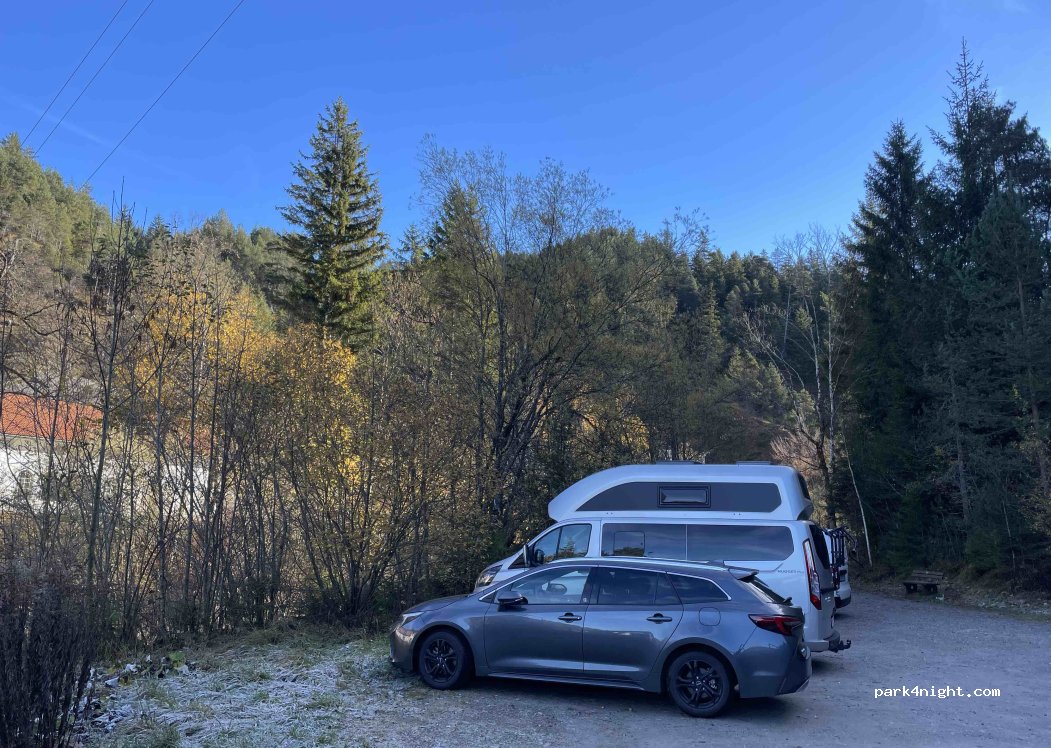Space for 10 cars. Quite place with a stream nearby. No "camping verboten" signs but of course not ment as camping place.