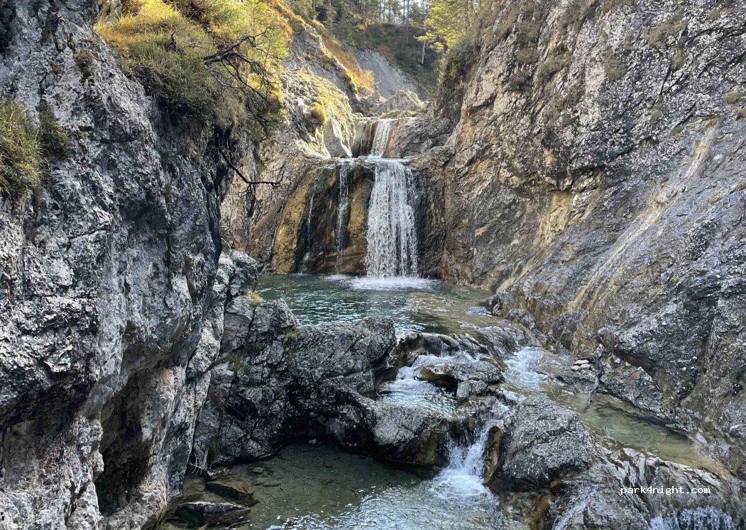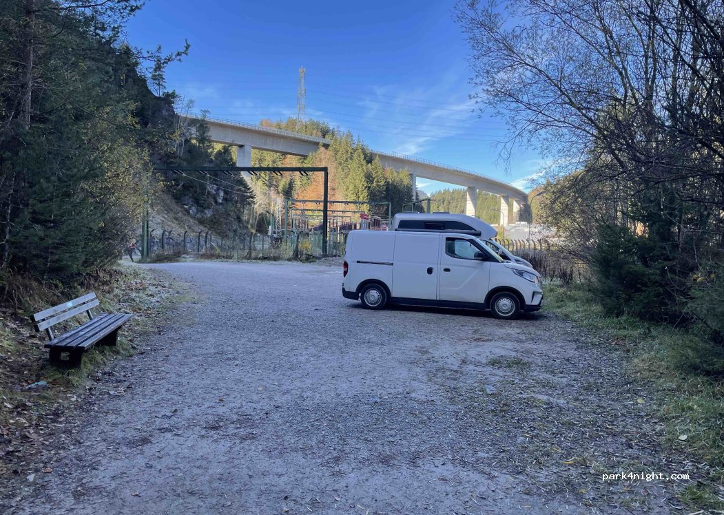 Very quiet parking lot. The route there let us really question our decision. It is along a big factory and powerlines. But the final parking lot is very big, next to the river and the Stuibenfalls are just 5min walk away. We had a peaceful night and went there the next morning.