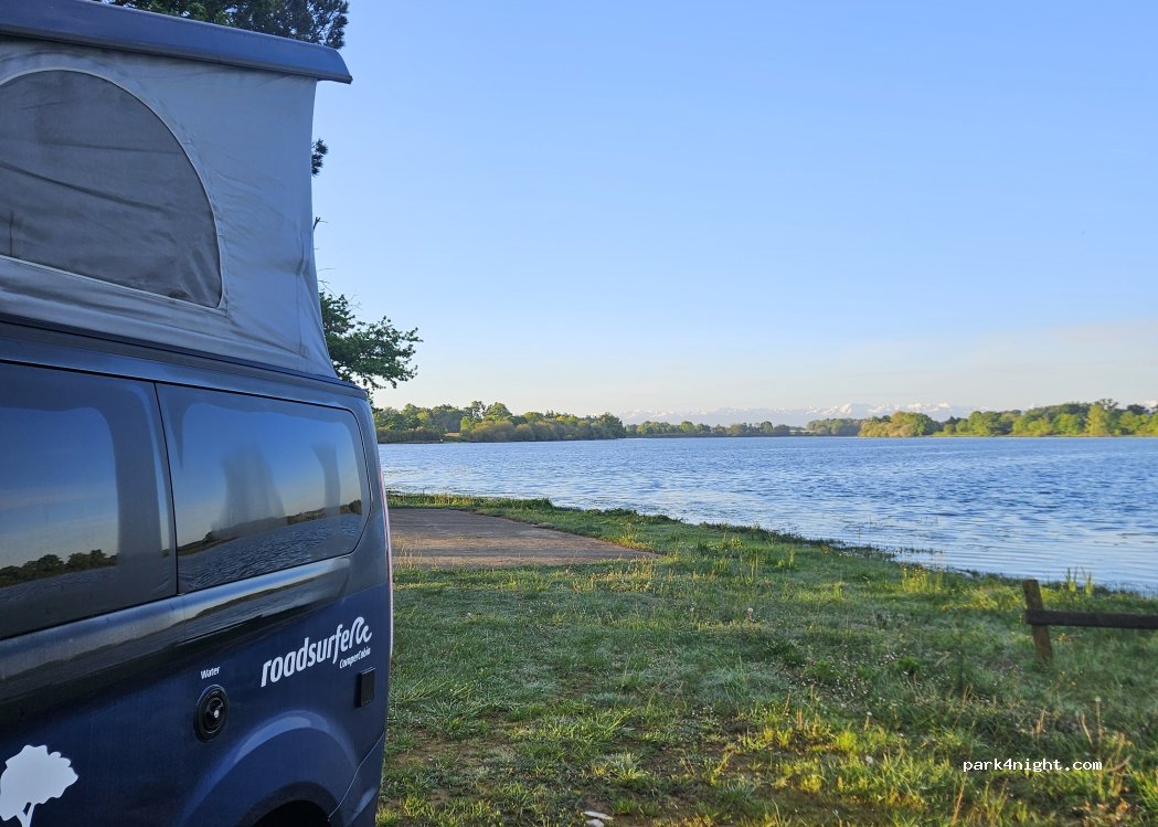 Réserve ornithologique avec observatoire (idéal en automne pour migration des grues et anatidés) donc se stationner sur la digue est à proscrire y compris par respect pour les autres promeneurs. Accessible à tous types de véhicules, eau wc poubelles.
