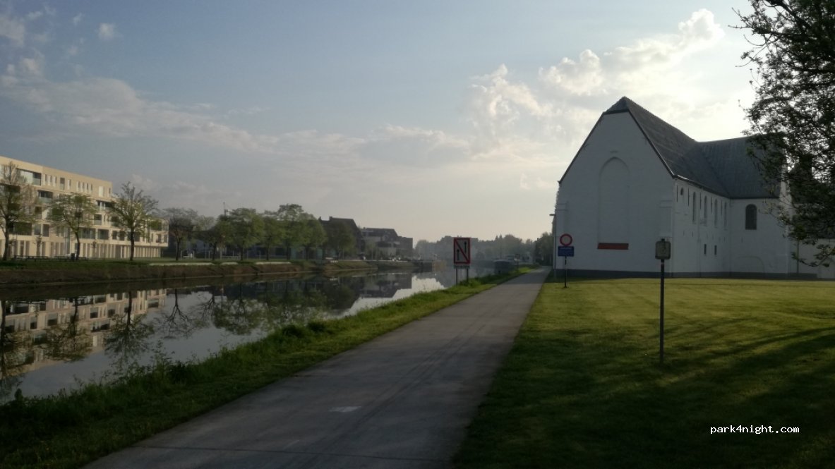 Estacionamiento gratuito, frente al centro administrativo y al canal "Maagdendale". Estacionamiento vacío. Sin prohibición de campistas. Tranquilo, el ruido del tren es un poco vergonzoso.
