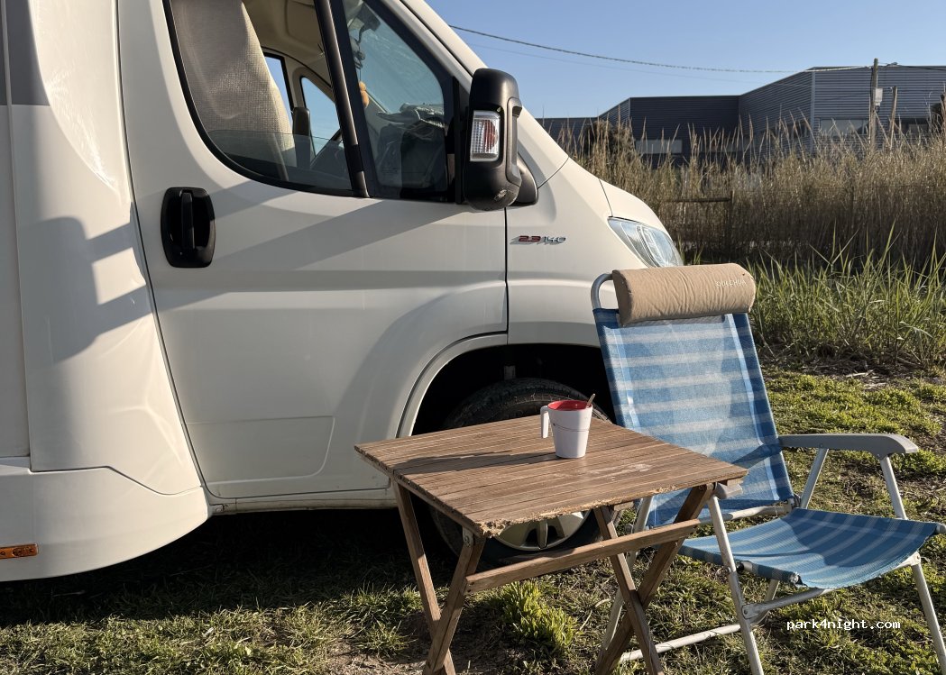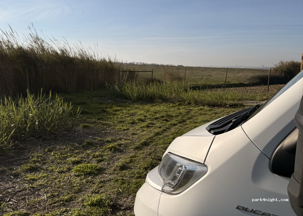 Amplio aparcamiento privado para autocaravanas, situado junto a un almacén en el Proyecto Agrocomunitario. Vistas panorámicas al campo, al océano y al pueblo de Peniche, con islas visibles en el horizonte en días despejados. El mar está a unos 2 km, un trayecto fácil en bicicleta. Acceso cómodo directamente desde la carretera principal, apto incluso para autocaravanas grandes. Se admiten perros. Dispone de agua corriente y vaciado de inodoros químicos. Cerca de la autopista, por lo que puede haber algo de ruido durante el día, pero las tardes y noches suelen ser tranquilas. Baloncesto y ping-pong disponibles bajo petición.