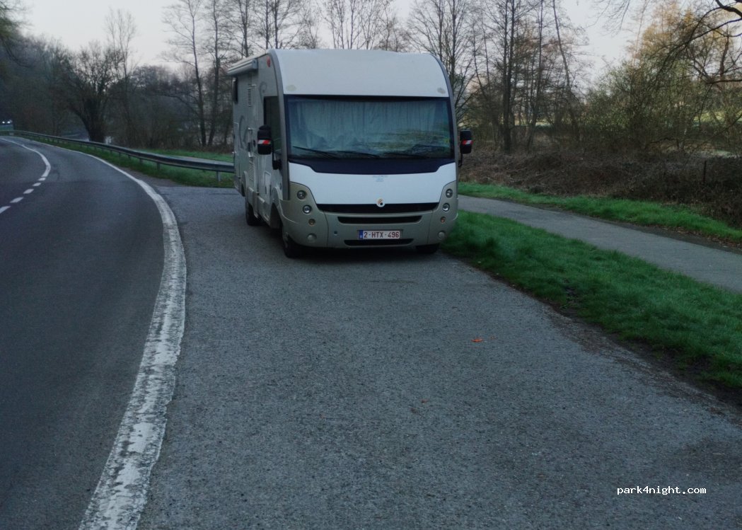Parking naast de weg. gemakkelijk om met mobile home op te rijden aangezien in goede nette conditie en lange strook langs de weg. van hieruit kan je langs de Ourthe naar Durbuy wandelen.
