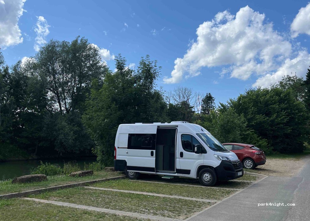Endroit intéressant, mais... Pas de recul en porte-à-faux sur emplacements voitures par la présence de blocs de pierre. Le seul emplacement possible pour un camping-car de longueur > 6 mètres est d'occuper le terre-plein en extrémité avec calage. Sympa de se trouver à seulement 5 mètres de la berge de la Meuse, sauf pour famille avec jeune(s) enfant(s). Réception complète TNT hertzienne et 4G.