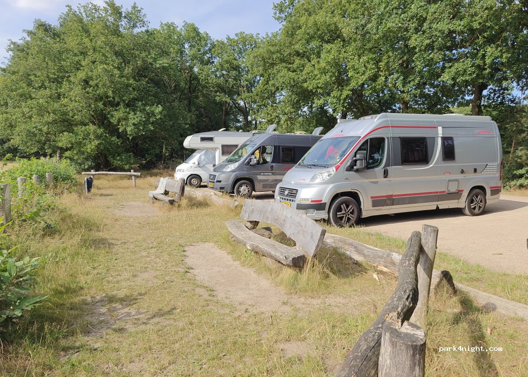 Parkeerplaats aan de rand van het bos. Helaas wel langs het spoor.