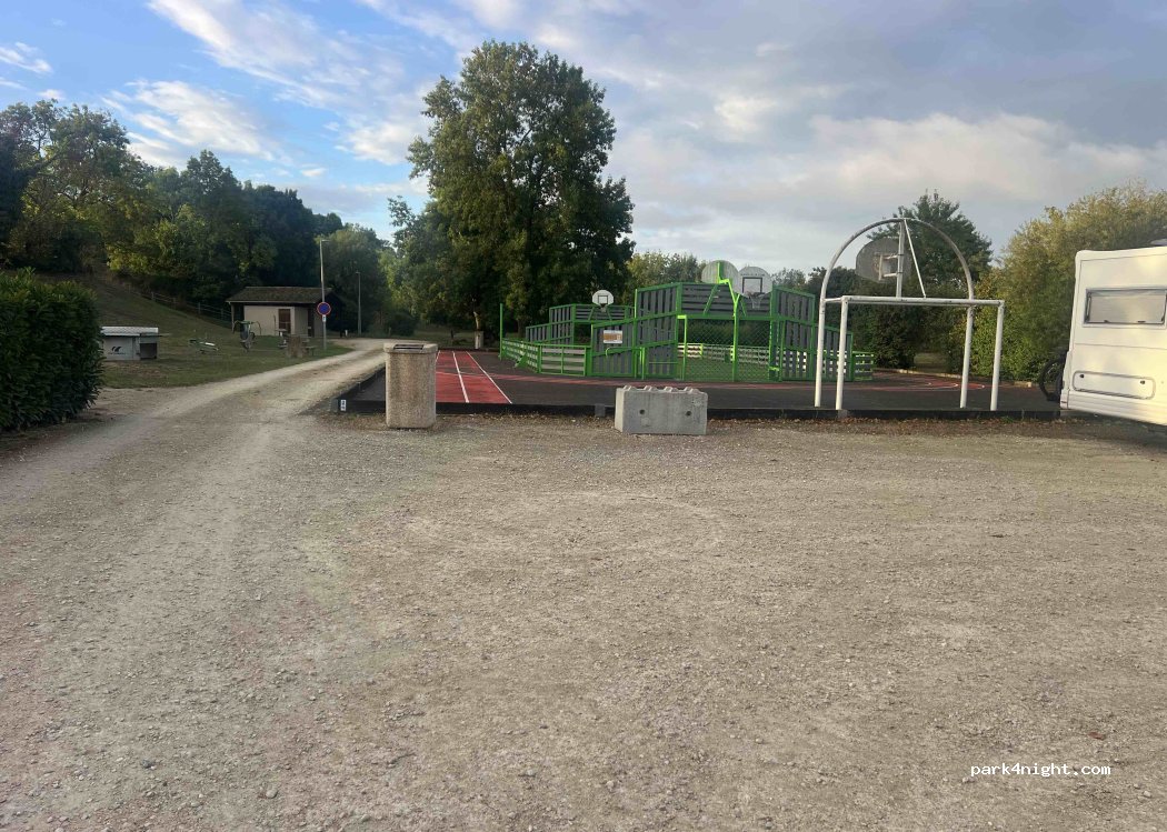 Super endroit spacieux et ombragé en fin d’après-midi. Les sanitaire sont très propres et le site très calme. Nuit agréable. Possibilité de vidange eaux usées et aux noires et remplissage de cuve. Merci à la municipalité et aux agents d’entretien.