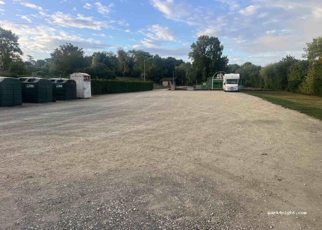 Aire très agréable et super calme. 5 emplacements au large et services gratuits sur sol stabilisé.