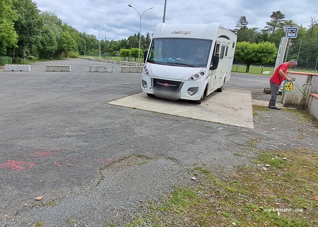 Aire de camping-car pour dépannage nombreuses nuisances sonores du au stade et à la petite rivière juste à côté.