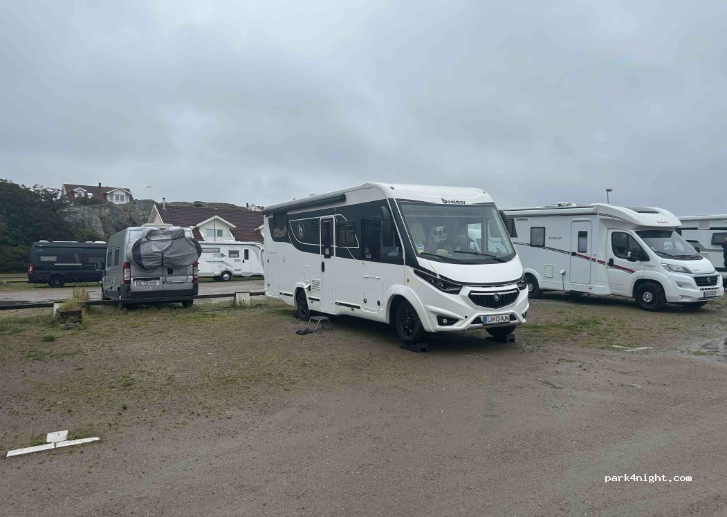 Toller Platz für 1 - 2 Nächte. Kein Servicehaus, aber Latrinenleerung und Grauwasserablass. Zu Fuss zur Smögenbryggan ist klasse. Toller Badeplatz in direkter Nähe. Jeder Platz ist markiert und sehr gross. Achtung: ONLINE bezahlen. Der Parkautomat ist für den Platz direkt daneben.