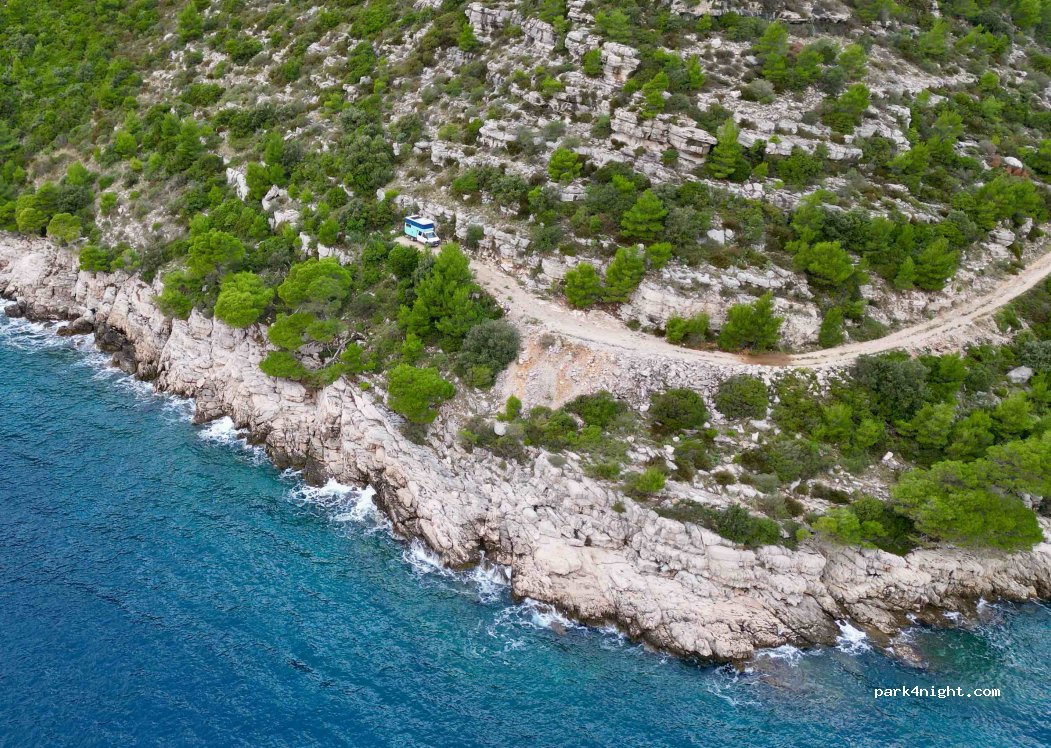 Kiesparkplatz am Ende einer unbefestigten Straße. Der Platz an sich ist sehr schön aber die Zufahrt ist eine absolute Katastrophe. Mit einem Wohnmobil absolut nicht machbar. Allerhöchstens mit einem VW-Bus. Am Ende sind zwei Plätze. Diese können aber auch schon belegt sein. Nicht Google Maps zur Navigation benutzen! Der Zufahrtsweg beginnt bei folgender Koordinate: 42.825629,17.665577