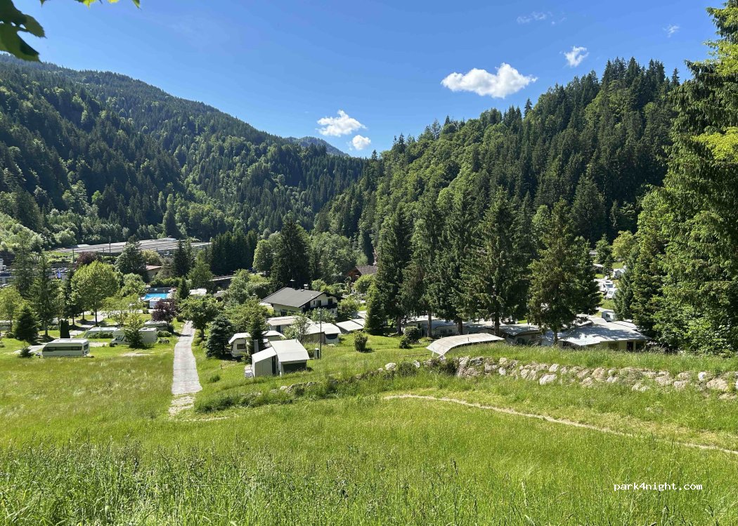 A nice site €67.50 for a campervan with 2 adults and 3 kids with electric. Lovely facilities. Showers etc. swimming pool nice. Really good kids play area. Shown around on a golf buggy. We stayed over here to visit the alpine coaster which is about a 20 min drive.
