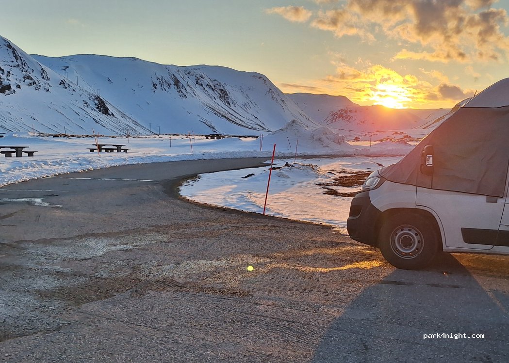 Haben den Platz nach der Mitternachtssonne am Nordkapp aufgesucht, da es uns dort am Parkplatz unmöglich war zu schlafen (ständiges Kommen und Gegen, starker Wind). Dieser Platz hier war super: Kein Wind, sehr ruhig, Toilette beheizt. Leider keine Befüllung/Entsorgung, aber man kann eben nicht immer alles haben.