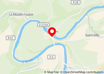 Aire de pique-nique au bord de l'Orne. 2 tables, parking le long de la route.